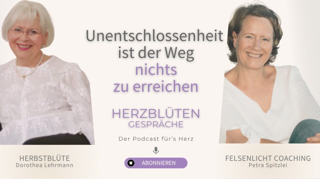 Unentschlossenheit fühlt sich oft harmlos an. Ein Abwarten, ein Zögern, ein „Ich weiß noch nicht“. Doch genau darin liegt ihre Gefahr. In dieser Folge der Herzblüten Gespräche sprechen Dorothea Lehrmann und Petra Spitzlei darüber, wie fehlende Entscheidungen uns blockieren – und warum Klarheit ein entscheidender Schlüssel für ein selbstbestimmtes Leben ist.